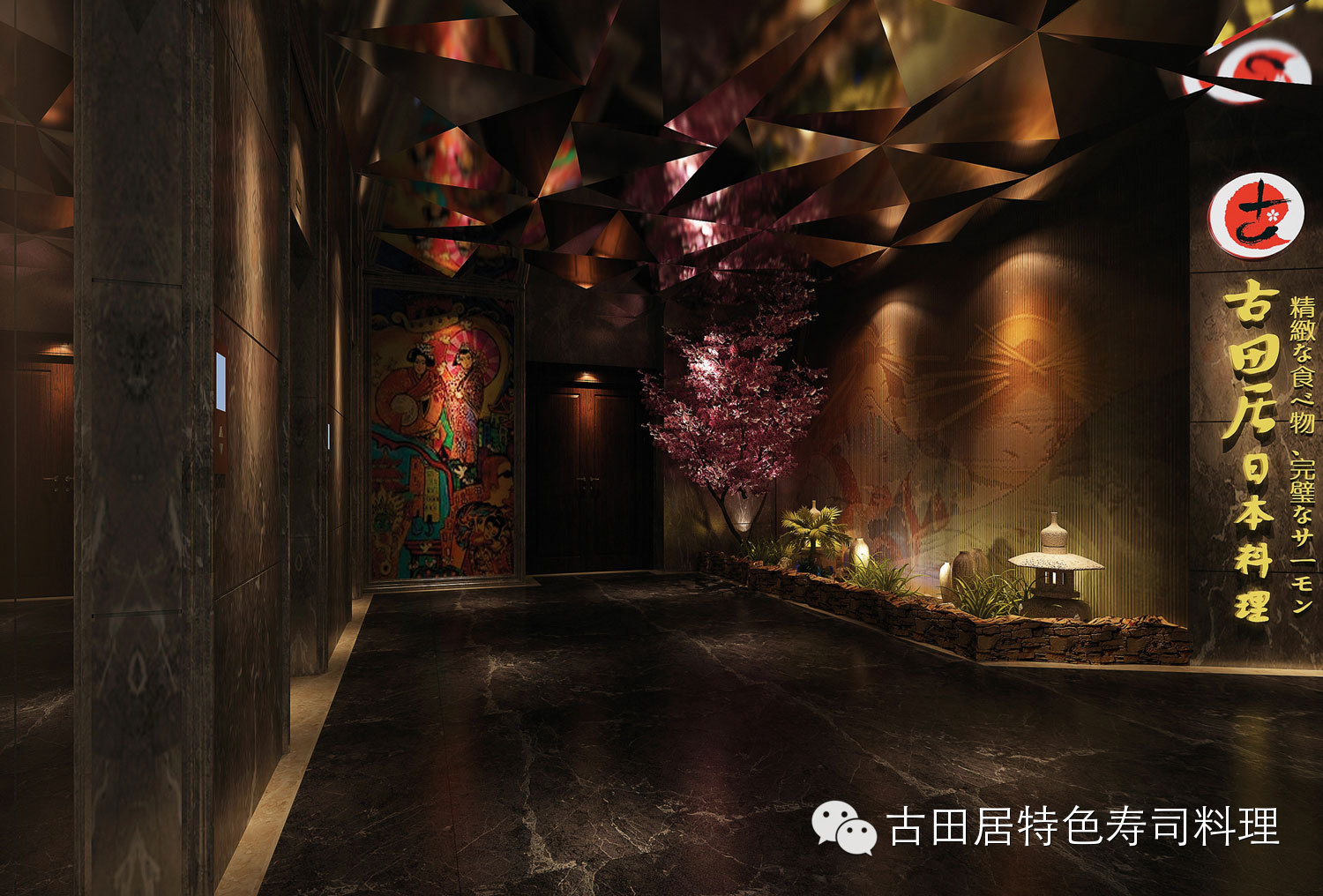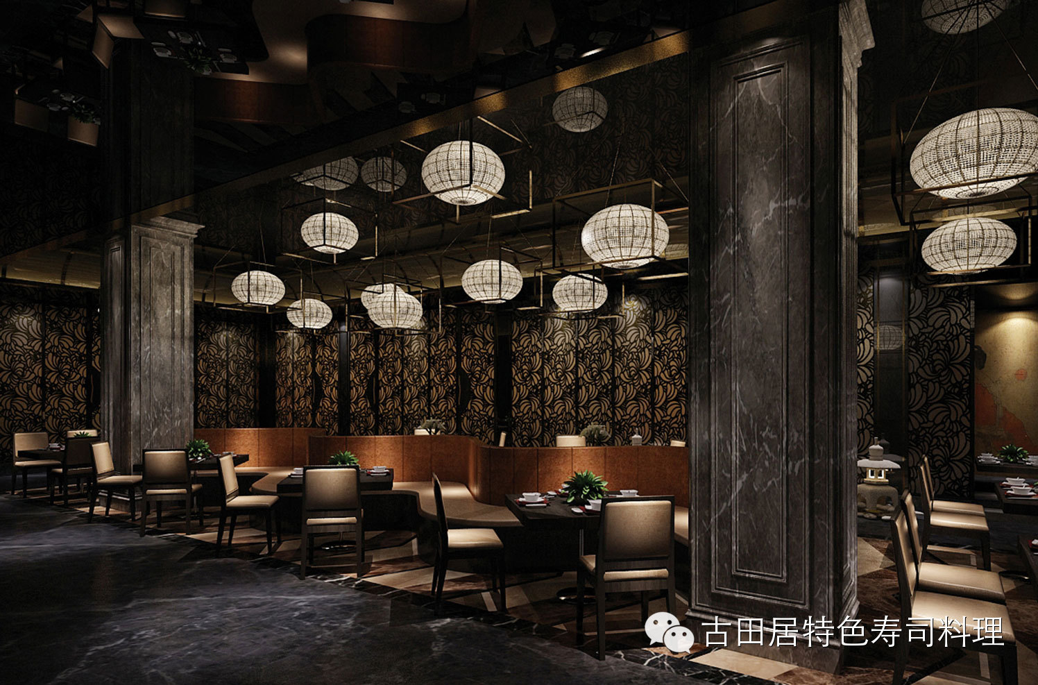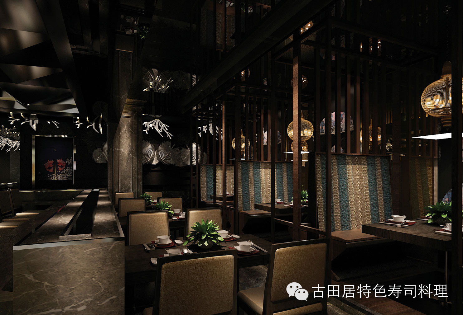 店内摆设具有浓厚的日本民族特色,色彩沉稳且富有个性,散发日式和风与东方禅意,前所未有的舒适感让您享受美食的同时,能感受到一种平和典雅的意境。
