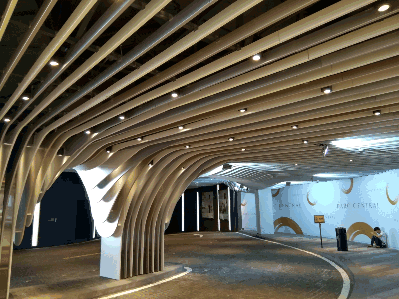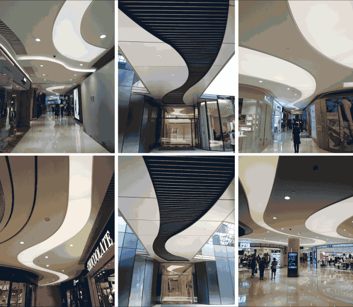这里的S形设计用在室内和室外的几乎所有天花上,配合这上文所提到的迷宫动线设计,根本找不到北。