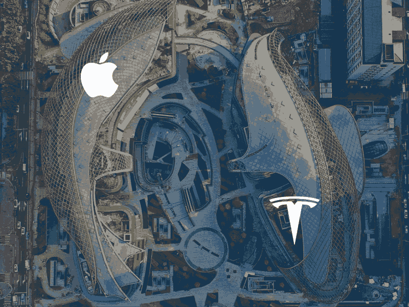 特斯拉在西北方的一个转角处外侧,而苹果则在东南方的内凹处,就像漂移的大陆板块一样,他们可以拼成一个完美的平面,就像是拼图一样。