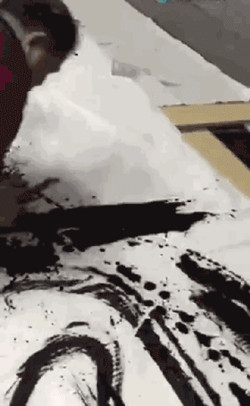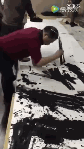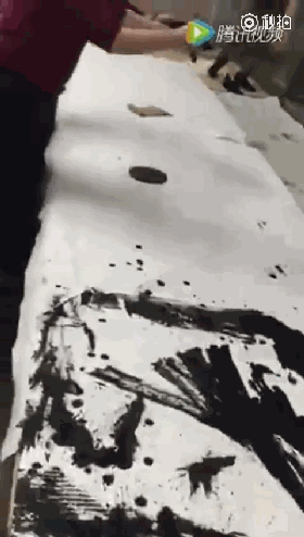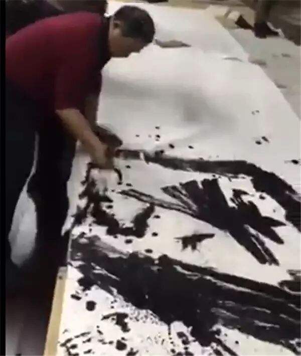 可是他似乎更钟爱用豪迈的方法写大字,就像视频中展示的那样。