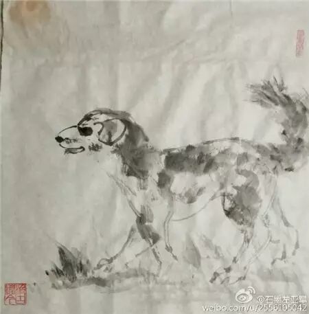 细节处动静巨微,特别是犬眼,污笔错盖,随即唤其为盲犬——现代书画命名之妙、真是妙不可言!