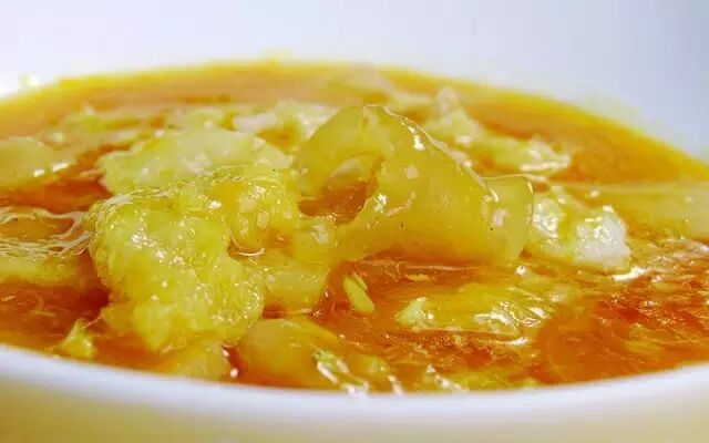 一盆热气腾腾的卤酸辣鱼鳔,色泽金黄鲜丽,浓郁鲜香,让人垂涎欲滴。盛一小碗,鱼鳔、醋肉连同汤汁等用汤匙一起舀起,送入口中,鱼鳔鲜韧、醋肉脆香、汤汁黏稠,微酸带辣、微辣带酸、甜丝丝、香喷喷,沁心爽口。可以单吃,可以配饭,也可以下酒。那特有的鲜爽味儿,唤起了所有的舌根味蕾;那酸辣小刺激劲儿,触击了所有的食欲神经。让人食不知饱,吃后留香,回味无穷。