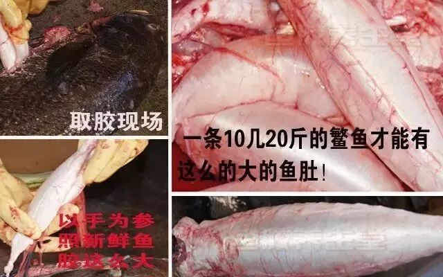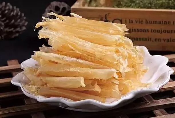 或者把鲜鱼胶放在鱼胶凳上,贴着鱼胶布拉粘盛开起,加工成宽10厘米许、米余长的胶带(这种叫长胶),然后充分晒干才是我们看到的鱼胶。