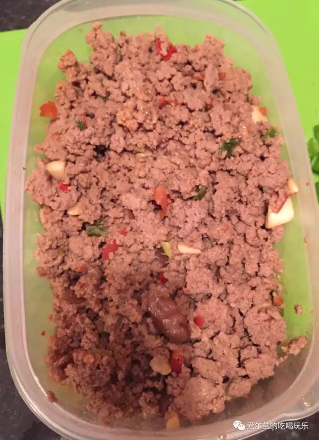 腌制半小时后炒制,用炸过的花椒油,先炒熟豆瓣,再加入腌制好的肉馅,炒到血色全部消失即可。
