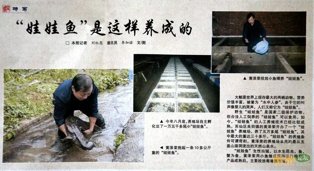 在2015湖南(郴州)特色农产品博览会上,被誉为“水中人参”,前肢后趾像人型,叫声如婴儿的“娃娃鱼”,吸引了不少观众伫足观赏。周末,笔者特意去了解了一下娃娃鱼的养殖。苏仙区良田镇桥头村的荣业大鲵养殖场,处于五盖山脚下,为了获取没有污染、恒温的山泉水(常年在15度左右),养殖专业户从山溶洞里300多米处用200毫米直径的管道将山水引出,娃娃鱼生性懒惰,喜阴怕光,所以整个养殖场漆黑一片,没有电灯,进去观赏就好像进入煤矿矿井,需头戴矿灯、手持电筒。