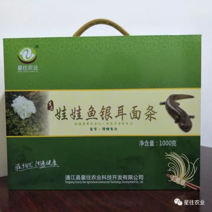 娃娃鱼银耳面条:以娃娃鱼肉干粉或烫汁、通江椴木银耳为基料,采用优质小麦粉,饮用水等为辅料,经科学配方,先进工艺加工而成。