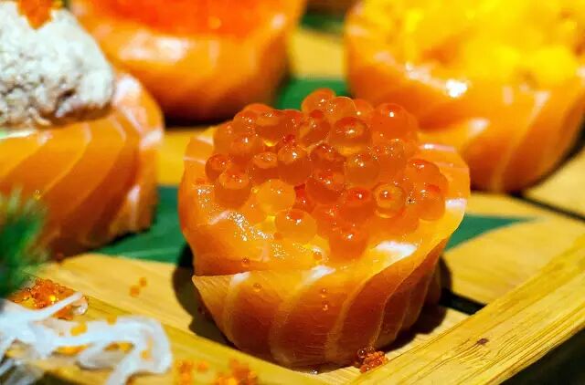 然而那性价比最高的当属【无敌舰队】,大部分折后2元/件,完全是要把回转寿司抓起来吊打的节奏!还有我最钟爱的吞沙军舰和口爆三文鱼籽军舰,衔在嘴里那叫一个爽!