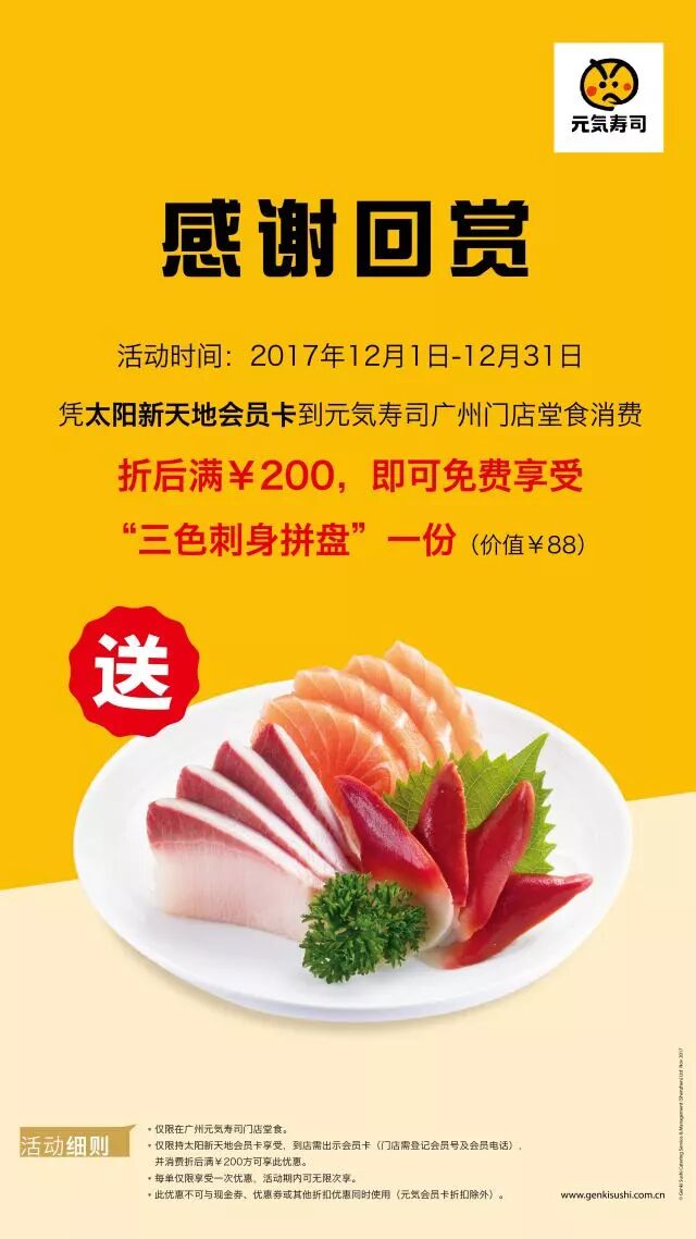 跟着太阳君来元气寿司免费享受三色刺身吧!