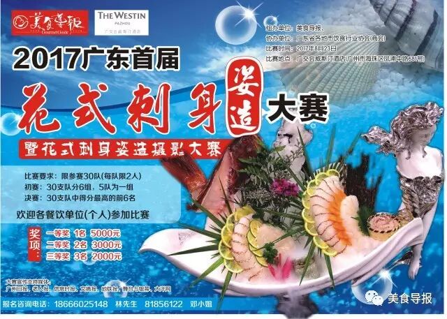 每队参赛选手2人,临场发挥,花式刺身姿造:每队选手现场制作创意姿造一款(内容、形式、做法、食材不限)时间50分钟。