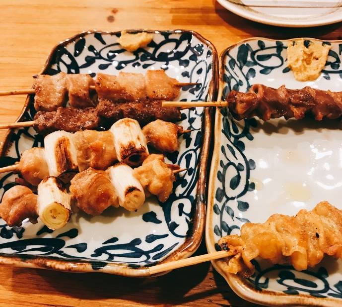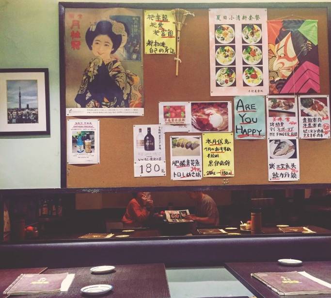 这里的东西与日本同步,烤串以猪肉和猪内脏为主,调味有酱烤和盐烤。比较推荐的菜式有烤五花肉、炒乌冬和煮牛筋,如果你不喝酒的话,可以点上一杯可尔必思苏打——酸酸甜甜初恋般的味道,一定让你天天挂念着要去居酒屋。