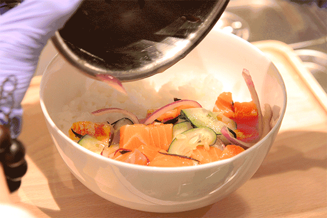 除了刺身和配菜特别,每一份冲浪碗都用了日本的优质米饭——寿司米。所以饭粒颗颗分明,吃起来香糯弹牙!
