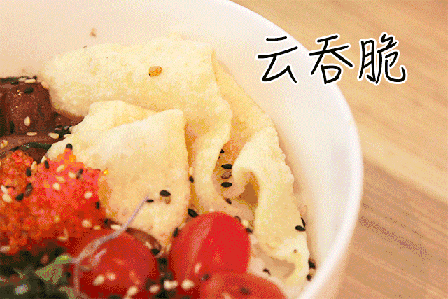 如果比起三文鱼,更喜欢金枪鱼的人一定要试试这碗!除了有刺身级别的金枪鱼,还加入了很爽口的云吞脆,吃起来真的很脆!