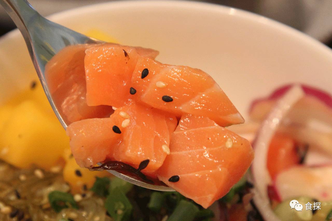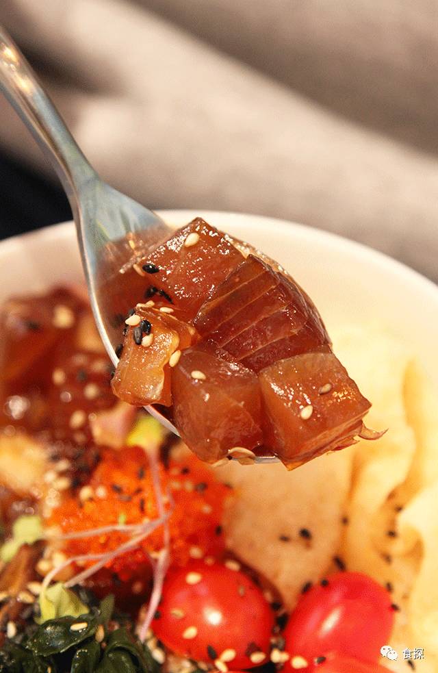 每一份poké冲浪碗都是用了五星级酒店标准的日本刺身级鱼生,经过厚切,入口肉质十分滑嫩。