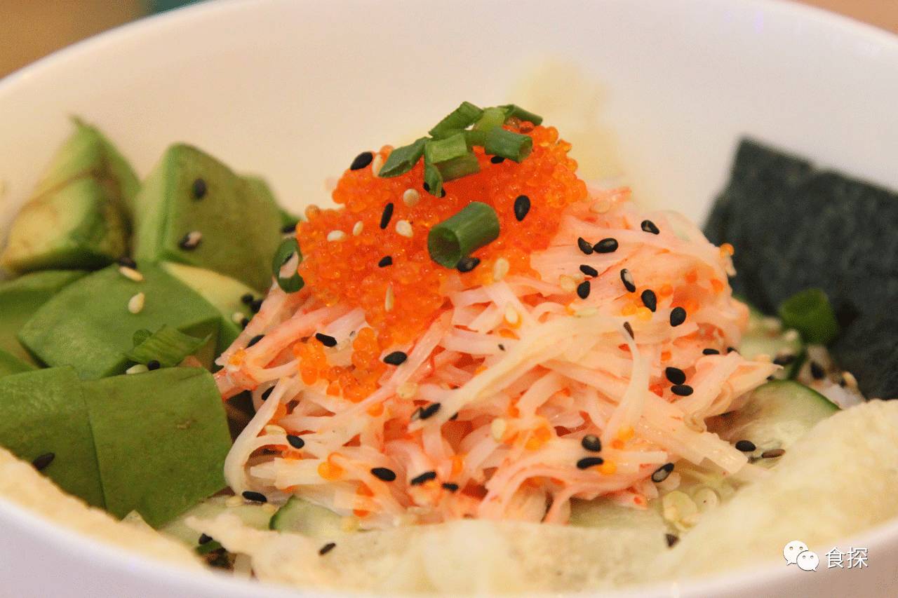 除了特别的辣味蛋黄酱,还有蟹柳和牛油果,吃起来会有种清新的感觉。