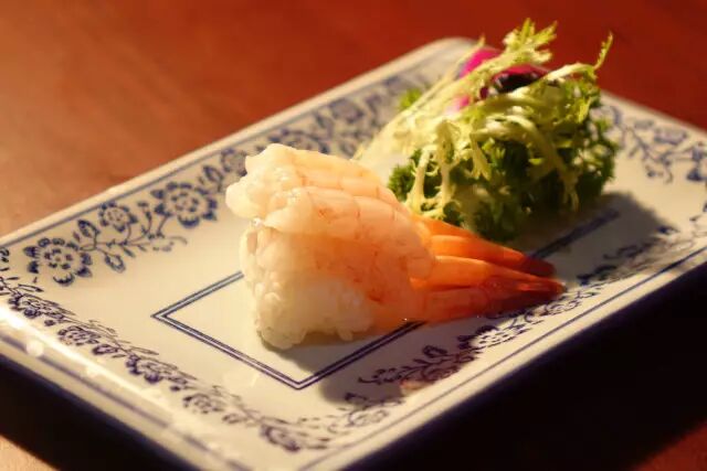 六只甜虾的一块寿司