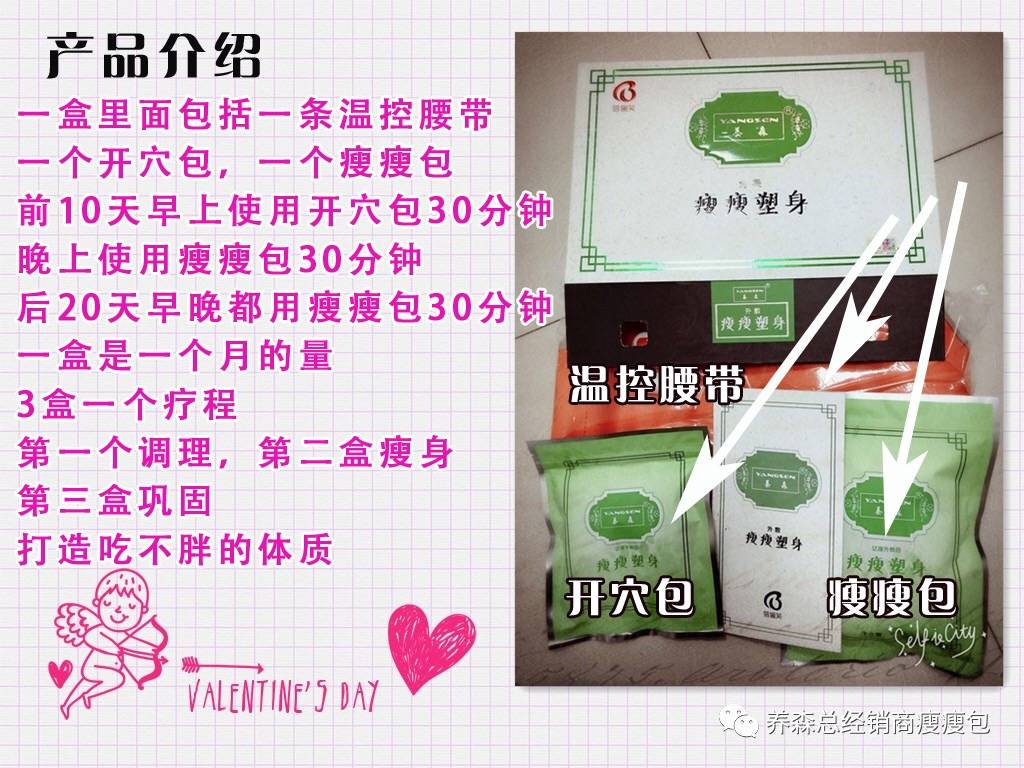 晚饭后2个小时,也可以在21:00-23:00期间敷药包(大包),可以先将腰带预热几分钟,敷半个小时,途中翻面5-6次就可以了。临睡前称一下体重。
