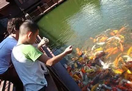 买一袋鱼饲料,往水里一洒,成群结队的鱼儿争先恐后的向你游来,一幅欢快和谐的景象一定会让小朋友兴奋不已。