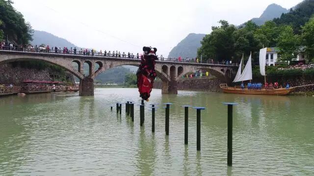 说起舞狮,小伙伴们应该都很熟悉。每头狮子有两个人合作表演,一人舞头,一人舞尾。在下姜,有幸可以免费观看高难度的“水上舞狮”,在轻重缓急的锣鼓声中,表演闪、扑、挪、腾、滚等,不时还会亮出一些令人瞠目结舌的“绝活”。