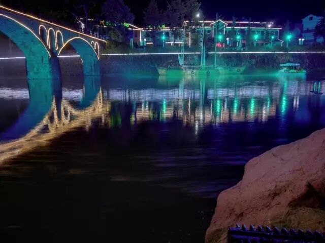 下姜溪滩奇幻灯光秀每天晚上八点至八点半为村民和八方来客献上一场视觉和听觉的盛宴。白天游下姜,晚上看灯光秀,也将会成为下姜旅游的新“标配”。
