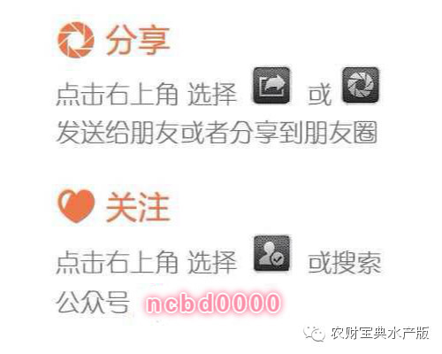 | 感谢您继续关注水产行业最具影响力的微信公众号“农财宝典水产版”!请点击顶部标题旁边的“农财宝典水产版”关注我们。 |