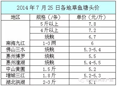 2014年7月25日,佛山地区生鱼塘头收购价如下: