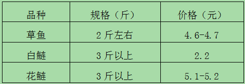 统计员简评:本周鱼价较上周相比,鳊鱼有所下降、其他基本行情稳定变化不大。详情如下:![]()