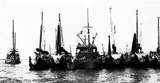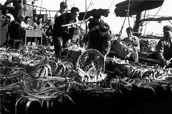 过鲜生意历史悠久,从何而起恐难考证,但从史载档案来看,其规模最大的当属上世纪六七十年代。当时渔业生产走上了机械化快车道,渔船还用上了鱼群探测仪。专营过鲜的舟山水产供销公司和各县水产供销公司的大小冰鲜船有100多艘。到了旺汛季节,海运、航运公司的运输船,甚至一些农业大队搞副业的运输船都会加入过鲜队伍。照片上就是舟山十五号船在洋地上过鲜的情景。