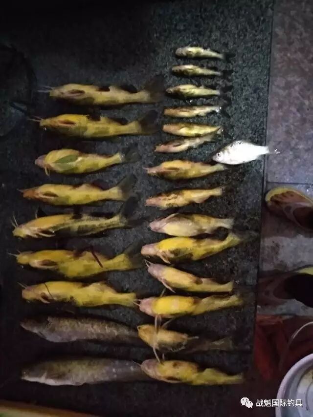 半个小时收获还可以吧,一条鲶鱼三个黄腊丁,大的没钓到都挺小的
