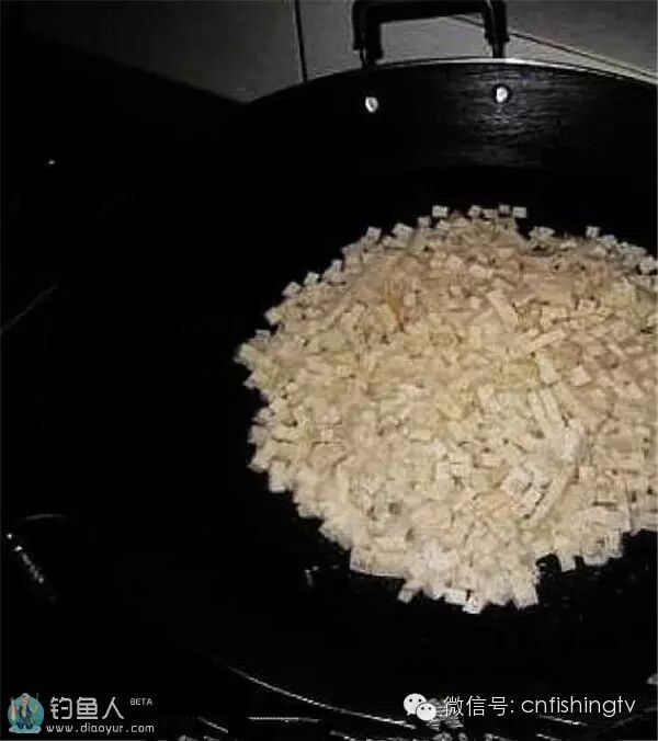 2、豆腐钩法、打窝。钩上挂一串豆腐,到底后抖落,如此数次即可。