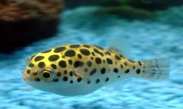 6、金娃娃。又名绿娃娃、深水炸弹等,很可爱的洄游类鱼种。它的最爱是蜗牛,并不吃水草,但就是嘴贱,喜欢在水草叶片上啃咬,可能是为了缓解压力吧。
