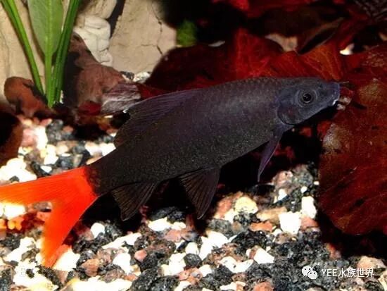 3、黑金鲨。又名红尾鲛、火尾鱼,是一种肉食性鱼类,但它喜欢生活底层,比较胆小,好到处躲藏,经常在草缸底部刨出一个个坑,所以,新开草缸最好不要养它。