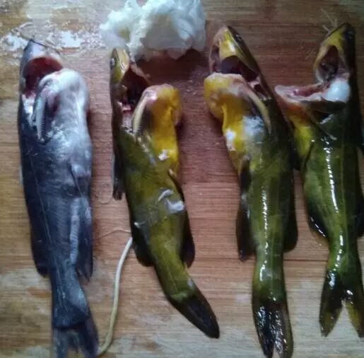 前几日到*****店,买了两斤黄辣丁,想给孩子吃。同时买了一包酸汤鱼作料。回家把腌料抹在鱼上,奇迹发生了!黄辣丁掉色,作料变黄了!同一批黄辣丁,有一只是黑的,其他的都是“黄”辣丁!嗯!很黄很黄!