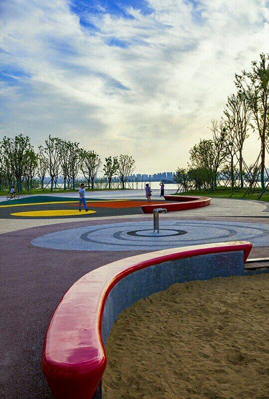 ▲五彩斑斓的地面,还有专供小朋友嬉戏的沙坑等设施