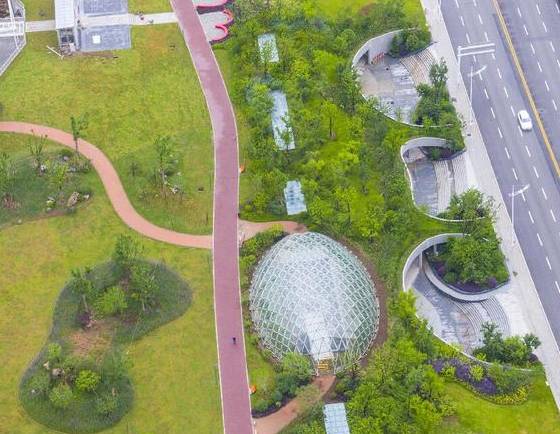 作为“海绵”试点,青山江滩二期内的园路、广场、绿道等7成以上的铺装,全部采用透水性材料,下小雨时走在江滩内,不用担心打湿裤脚。