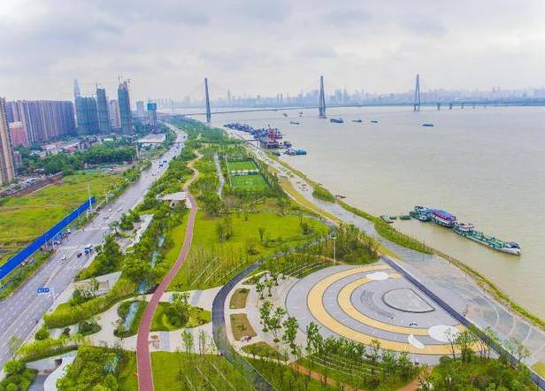 在青山江滩建设三路段,有一处面积达1万平方米的时尚广场,这将成为武汉已建江滩公园里面积最大的广场,可同时容纳万余人开展文体活动,市民可一边观看表演,一边眺望天兴洲和长江北岸美景。