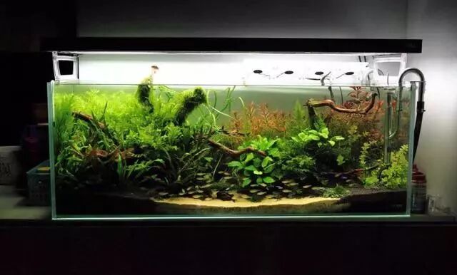 一般来说,草缸造景基本都是以水草为主,游鱼为辅助,而且不推荐在草缸里饲养太多种类的的鱼,这样会显得很乱而且很容易让鱼变成主题,从而让费心思弄的水草造景被人忽略掉。网上有相关的草缸饲养鱼类条数计算器,感兴趣的朋友可以去看看。