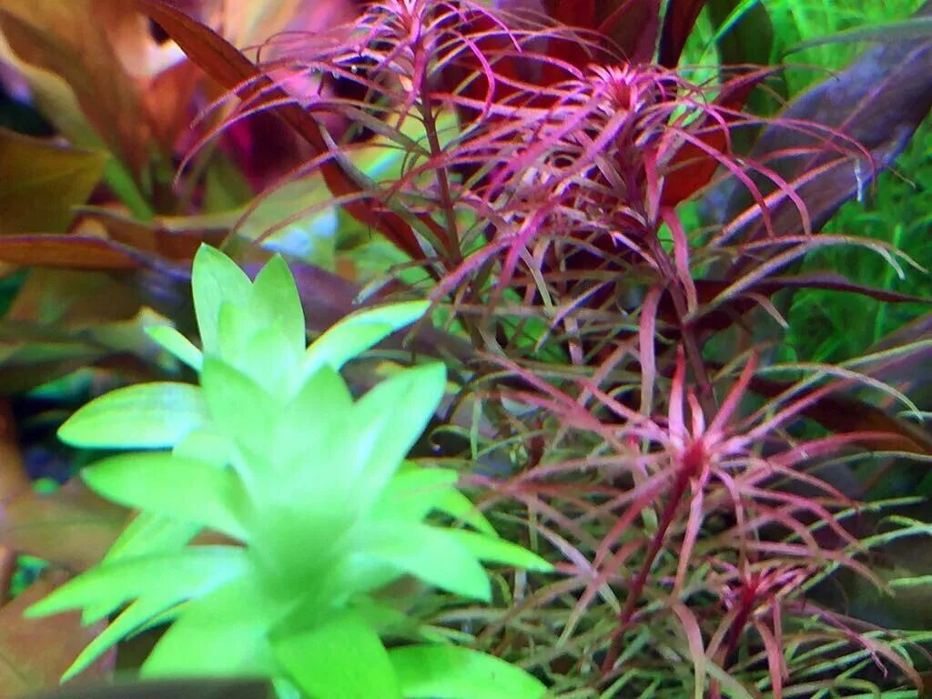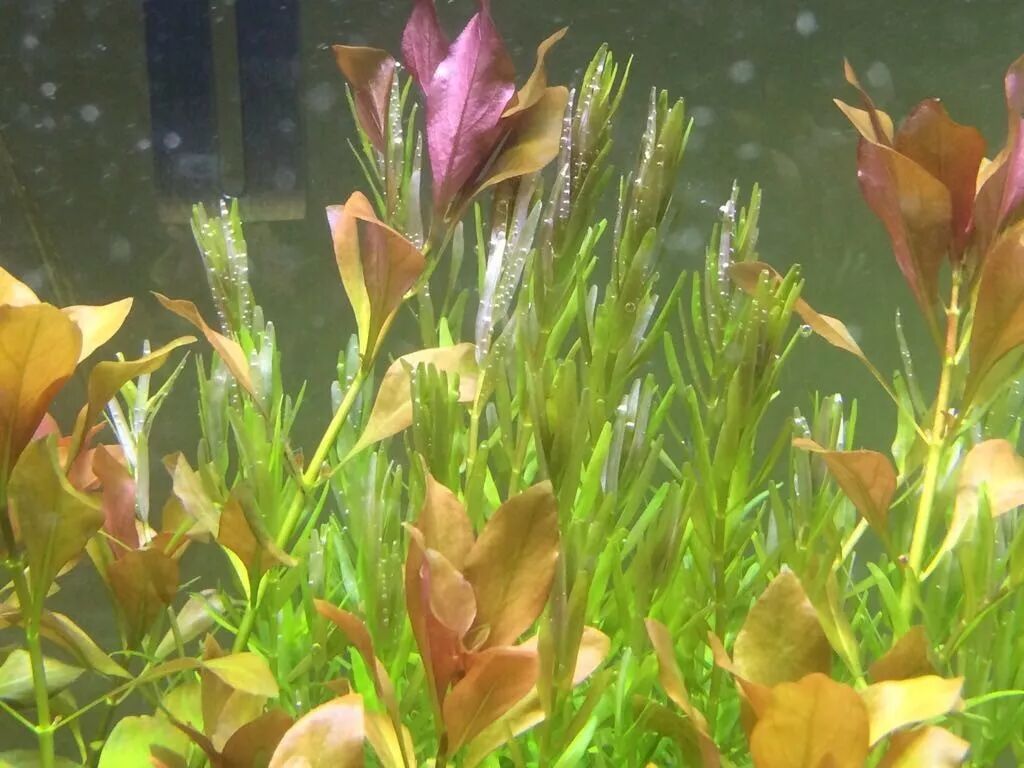 水草状态很好,非常让我惊奇的是之前一直半死不活的丝叶太阳竟然在南风tt灯的照射下发色了