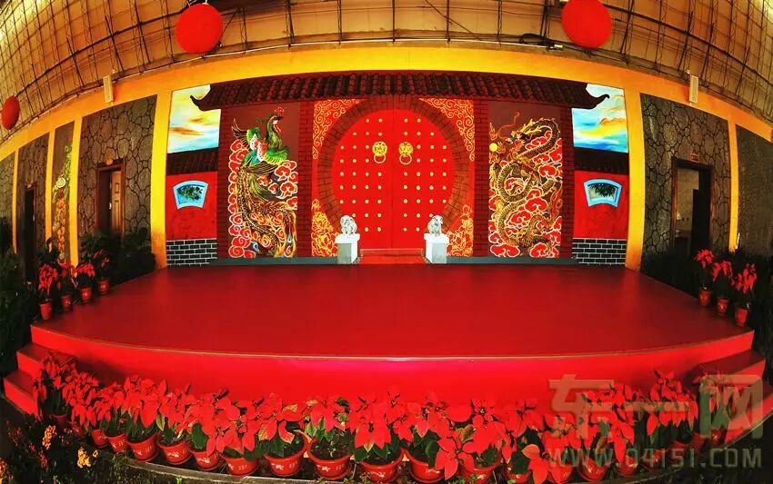 传统的中国红色调营造了古朴大气的喜宴舞台。