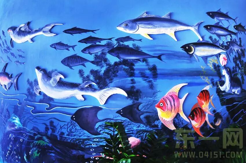 刚一进门,墙上游来一群鱼,乍一看还以为进了海洋馆。