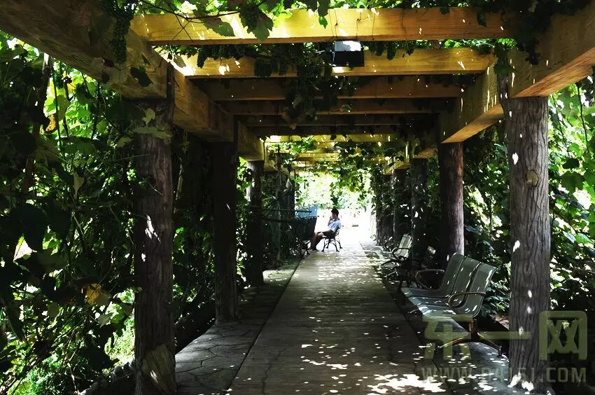 蔓蔓芊芊的葡萄树,深情又执拗的相互拼接。漫步藤蔓下,感受它们细枝末节的表达,安静地享受这须臾的休闲时光。