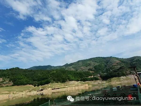 [似画] 青山绿水蓝天白云,只用一张图片就把白龙湖的景色描绘得淋漓尽致,湖中的网箱还未到拆除期限,光秃秃的水岸线也成了一道风景线,绿水、网箱、水岸线一起融入湖中,这情景与画中的风景何其相似,不过,这只是白龙湖很小很小的一角。天气较好,初夏的阳光,照在人身上感觉有温度,但是还不太刺人,由于光照好,拍出的图片都清晰很多,而且天是那么的蓝,天上的蓝倒影于水中,观之真叫人爽而心旷神怡。这个地是我们一行人,这次钓行的终点,我们将住在这里钓三天(见面算一天的话,是三天。实际只有两天。)。