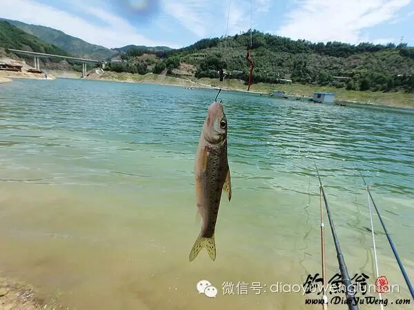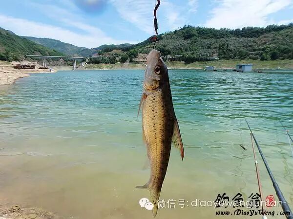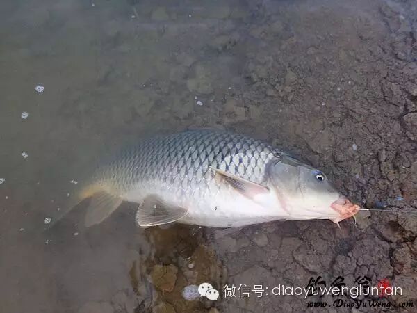 一夜之间杆竟插在了中,让人产生误会:抛杆落点线短了,需把杆插在水中来缩短距离。这一摆差点把几支杆丢了,第二天清晨看见杆杆泡在水中,因为泥巴泡粑,有几支杆完全斜倒在水中,如果有鱼咬钩,杆杆必丢。一个不小心中鱼了,那阵仗要话说,野生鱼劲道不一样,根本就象没被钩住,也没被线牵住。自顾自地往水的深猛中,几分钟后鱼儿的力道开始减弱,意味着可以收线了。离岸边不远了,看见鱼了,是鲤鱼。实际离得还有点距离,是水太清之故,此时的鱼儿在水中的深达三米以上,搏大鲤刺激啊。没想想到上周一尾,这周又一尾,虽然白龙湖长寿湖相隔560公里,相临两周碰到的大鲤MM重量相差无几,这有点太巧了吧!杆杆没有抬起头来,杆尖尖只是一个劲往水中按,水清是不同,鱼儿在水中的任何一个细节看得十分贴切。一冲、一沉、尾巴一扇,都是那么的逼真而有力。有十斤吧!不一会就被溜翻了,一看又是一尾待板籽的鱼,估计是累倒了,躺在岸边一动不动的,正享受着负氧离子含量很高的空气。挂得不牢,很明显只钩住一点点,拍完照,猝不及防鲤mm突然跃起,一个掉头直接摇头摆尾脱钩而去!随着一声“哦豁”,再见都没来及说,刹时就没了踪影![守弹簧杆间隙里] 弹簧杆泡在水中一动不动,在这个间隙时间里唯一能打发时间的是玩手杆,水太深钓位难选,左选右选找到一处有四米多深的地方,酒米,粑粑,蚯蚓交替便用,就是这种棒棒鲹,极象花鲹,其实不是花鲹。这种鱼在重庆的溪河很多,捧捧似的,很肥。用红袖三号挂小蚯蚓,效果定会不错。『白龙江江团』