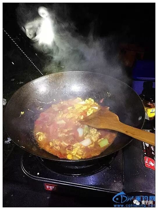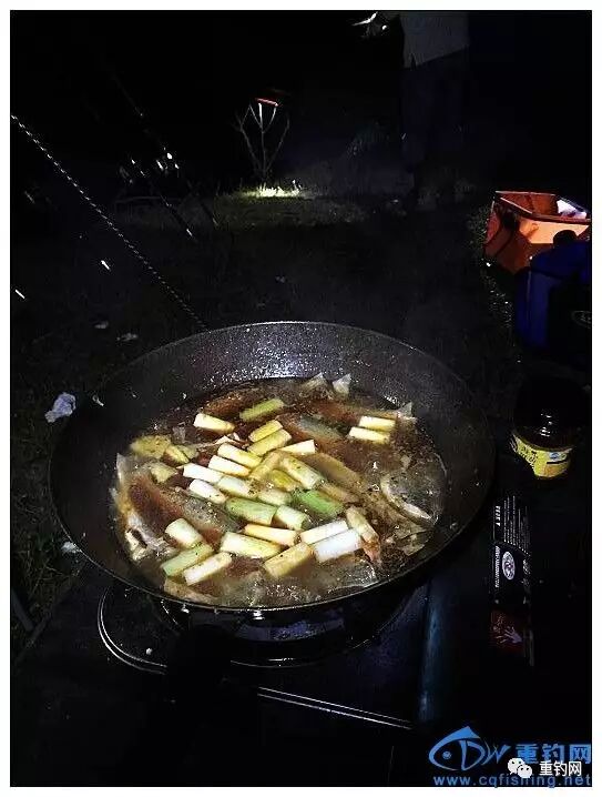 『吹垮垮聊鱼经』 晚上可夜钓,杆插在水边不担心遭缴。天色也暗了下来,鱼也起了,肚子也饿了,灶架起,桌子摆起,晚上无论如何要喝几杯。炒个番茄鸡蛋,煮一锅鱼,煮一锅连锅菜,鱼也钓了,野炊也搞了,何乐而不为呢?