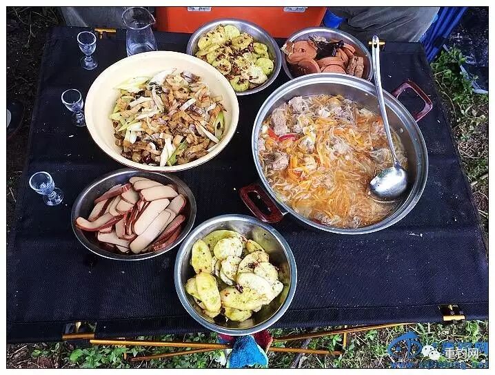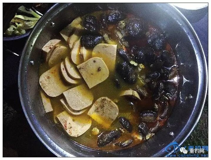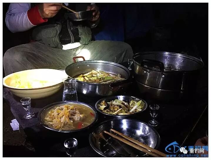 『野炊的妙处』 唯一的困扰就是装备太多,不能走路太远,所以车必须要到河边,现在出钓要想找一个搬东西的,用三个字就概括了:不可能!只有直接把装备搬上船才省事,你想到那个旮旯各各,人走不拢的地方,船能去的地方都可以。自己开伙食的好处多了去,第一、能找到自己心仪的钓位。第二、免遭农家送饭来时污窝子,你想早中晚船你窝子里过三次,有鱼进窝也被骇起起了。第三、花钱不多,吃得绝对比农家好。第四、可以把伤的恼火的鱼消化掉,丢了又可惜,这样一来享了口福,也没有浪费拉鱼时的表情。