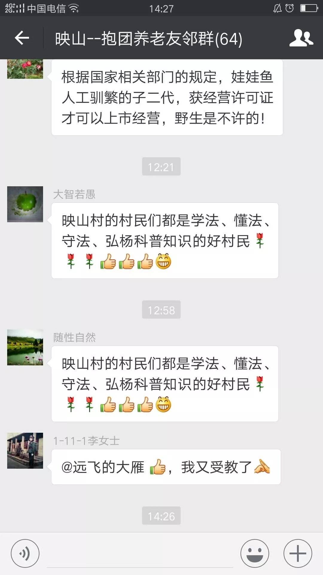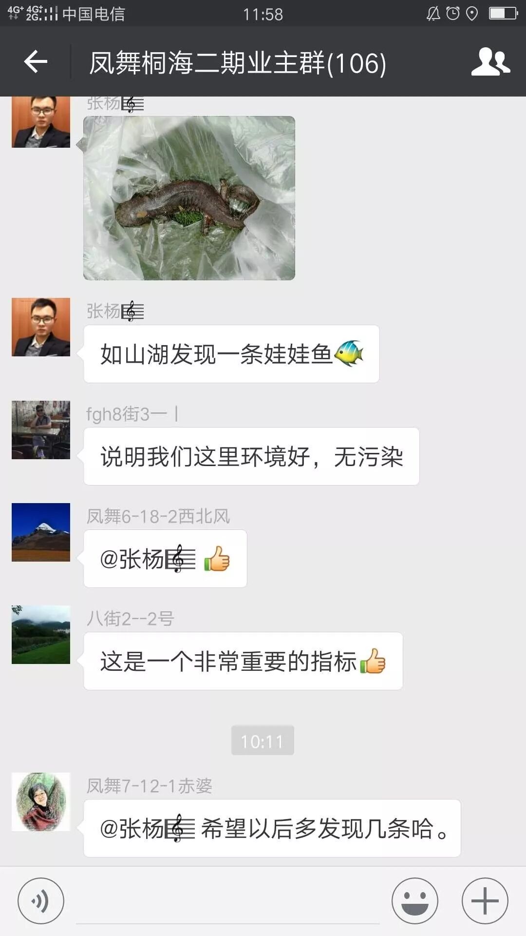 捡到娃娃鱼的消息一经发出,也引起了广大业主的关注,纷纷在群里和朋友议论了起来。