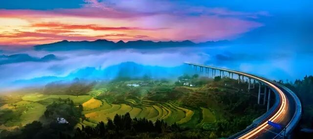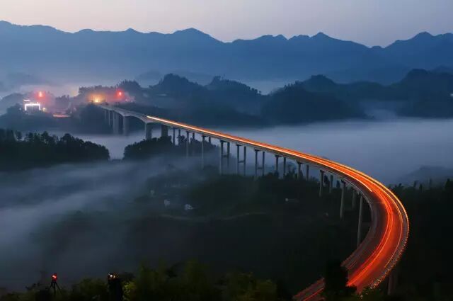 周家山大桥也是网红哦,之前在网上传疯了的绝美照片的主角就是它。无论是薄雾笼罩,还是霓虹车流,都美得不像人间。
