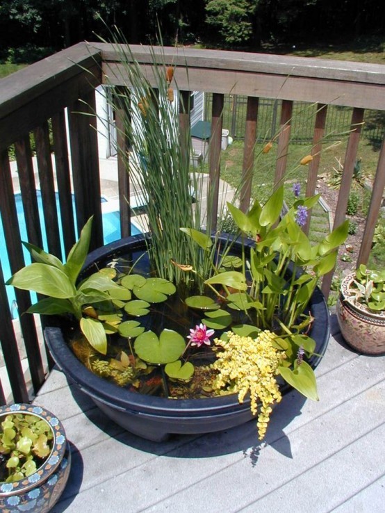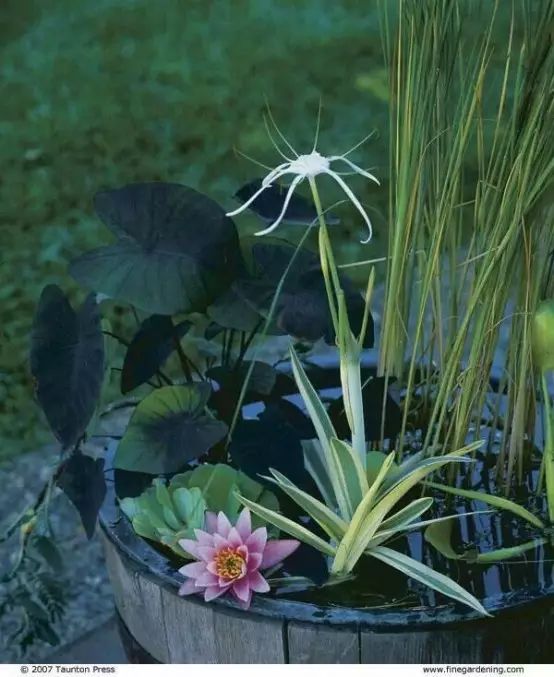 不管是院子、阳台、露台,都能充分利用起来,摆上一个水钵、花盆,种点水生植物,养几条好看的鱼,每天在花草中,看着鱼儿游动,追求自由的梦想油然而生。