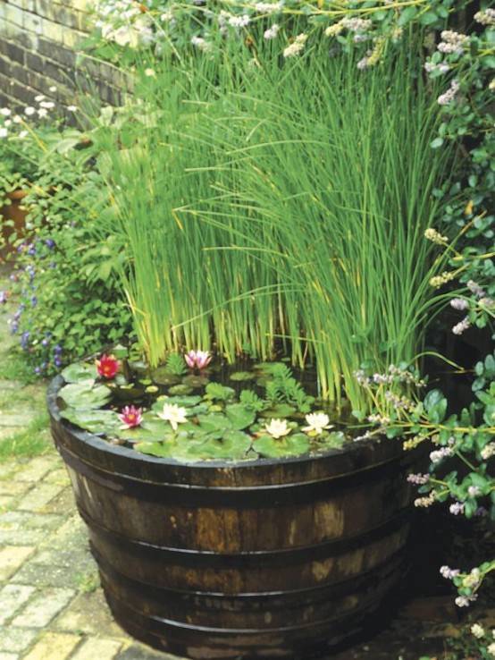 古朴的木桶,点缀上几朵莲花,静待花开的一霎,收获喜悦。