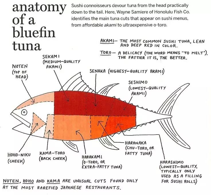 蓝鳍金枪(Bluefin tuna),属于全球巡游鱼种,味美稀有且捕捞成本极高。主要分布于北半球的太平洋(如日本菲律宾)和大西洋海域(如加拿大墨西哥湾)中。它是游得最快的鱼,捕食时可以达到每小时88公里的速度(24米/秒);也是最大的鱼之一,平均长度2~2.5米,最长超过4米。