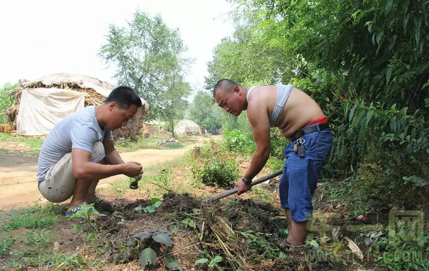 司机刘师傅(右)和朋友在挖掘钓鱼的诱饵。猜猜挖什么?